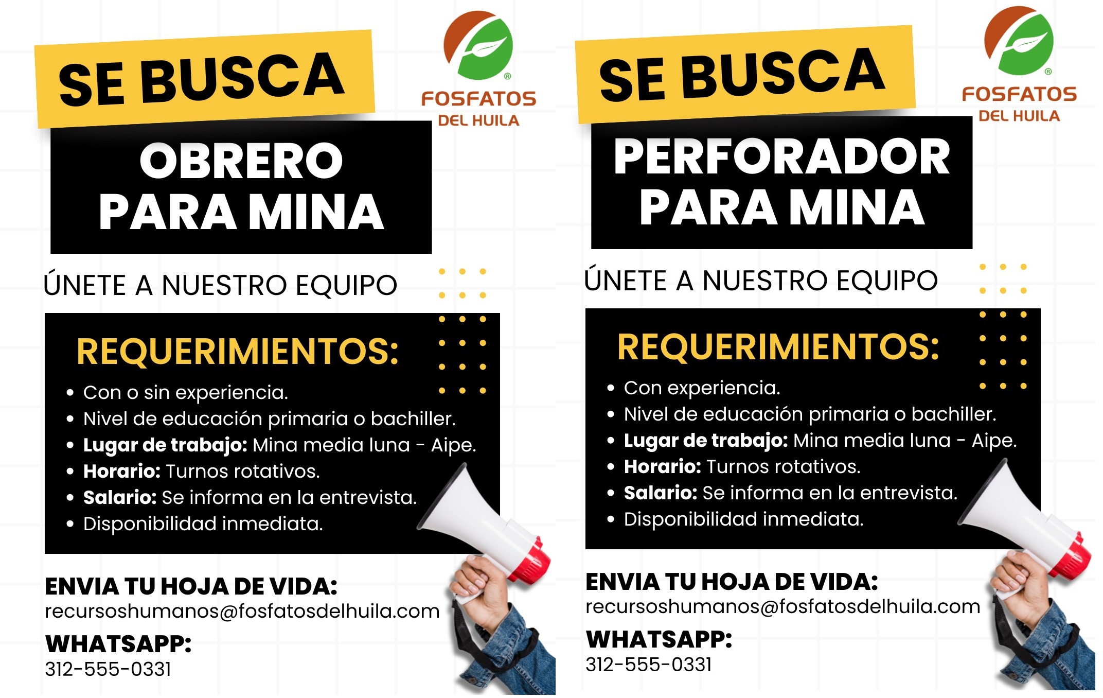 #EmpleoHuila #VacantesHuila #TrabajoEnMina #Aipe #Neiva #FosfatosDelHuila #EmpleoColombia