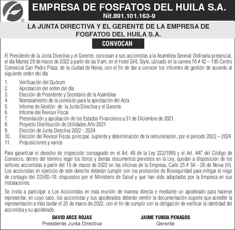 en Citación Asamblea General de Accionistas
